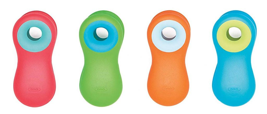I use the Oxo ones, which you can clip into the dishwasher to thoroughly clean them. Clothespins should work just as well, but it depends on the dishwasher whether you’ll be able to position them to get fully cleaned.
