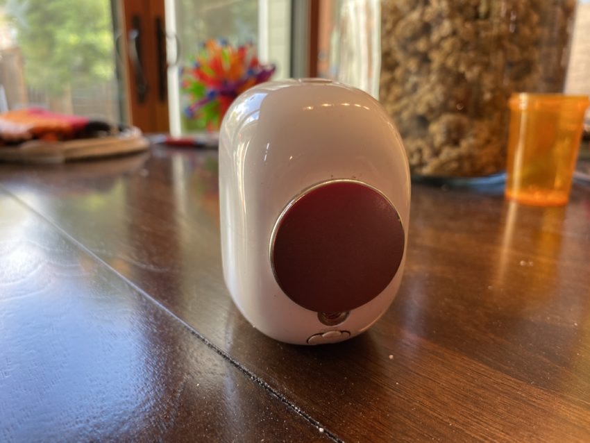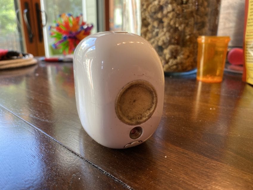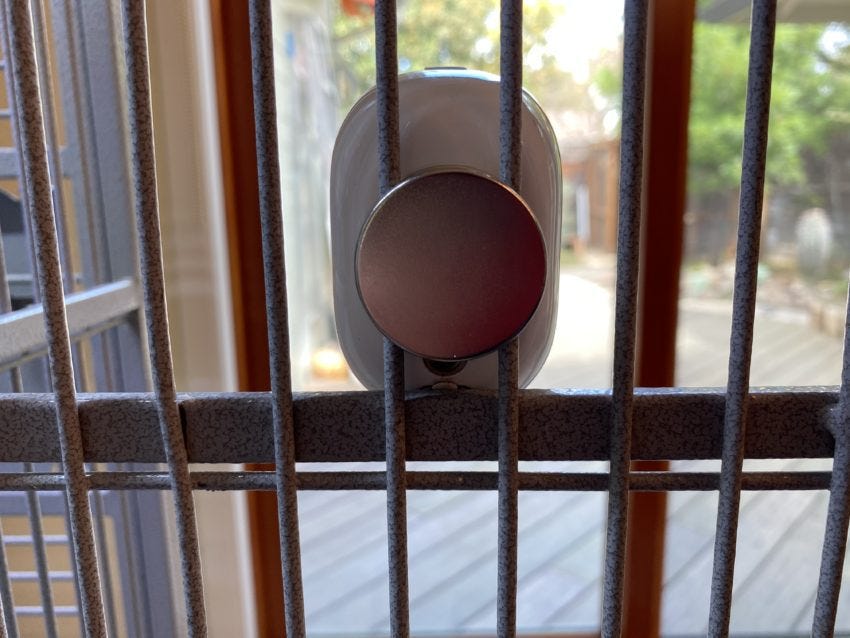 Note that the reason this works at all is that the Arlo camera has a strong magnet in the back and that’s how it sticks to the metal mounting sphere.