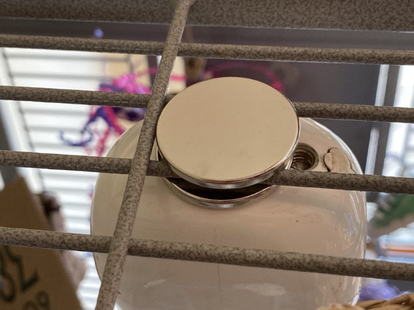 Playtop cages don’t often have that nice flat spot to attach magnets, so you need to use the cage wire.
