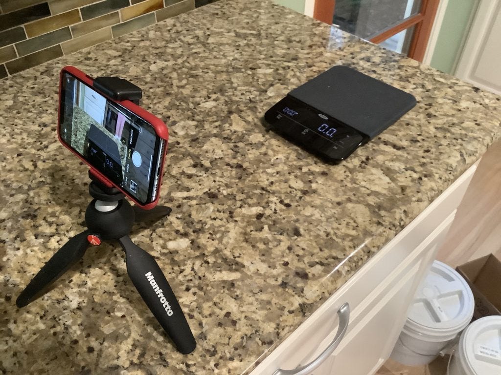 Once the food bowl is in place, start the camera recording video. Sometimes slo-mo can be useful as the scale can fluctuate a lot as birds hop around.