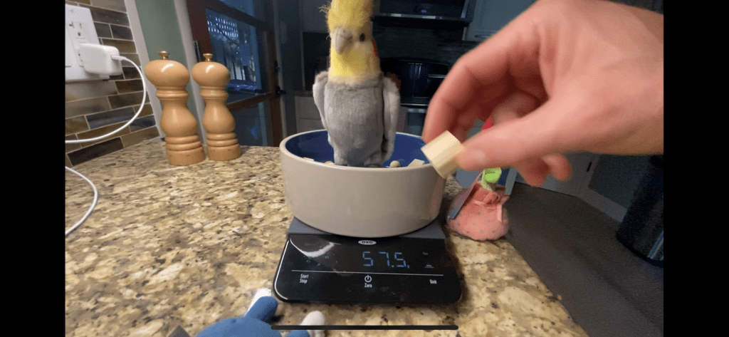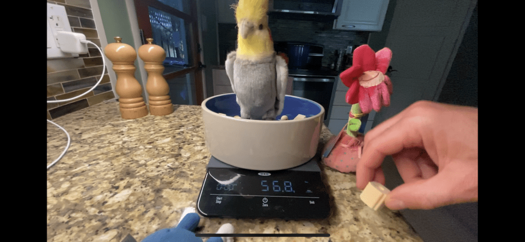 This may seem like a lot of work but if you have a lot of birds and don’t want to catch them to weigh them, this can be a non-intrusive way to do so. It can be a fun, regular activity for them. Perhaps you can use a unique treat only for this occasion so they look forward to it.